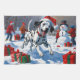 Ein gepunkteter Dalmatiner läuft spielerisch durch die schneebedeckte Winterlandschaft und trägt einen festlichen, roten Weihnachtshut. Dieses lebendige Design unterstreicht den unverwechselbaren Mantel der Rasse, die energetische Persönlichkeit und den fröhlichen Geist, während es die Wärme und Freude der Ferienzeit einfängt. Ein herzlicher Winterurlaub voller festlichen Charme.