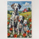 Eine lebendige Dalmatiner-Familienszene in einer farbenfrohen Mohnwiese. Mit einem stolzen erwachsenen Hund und zwei niedlichen Welpen zeigt dieses Kunstwerk Energie, Kontrast und natürliche Schönheit – perfekt für Hunde-Liebhaber und helle Dekoration.