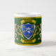 Weck mit der Jumbo-Tasse über voll von heißem Kaffee, Tee oder schokoladenbrauner Schokolade! Der irische Schild ist in einem goldenen Blattkranz und Greifen auf beiden Seiten! Erin geht Bragh!