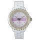 Ein Digitalbcon-Design mit einem amethystisch lila Farbmotiv und Damast-Design in dieser einzigartigen "Damask Amethyst Wedding Anniversary"-Uhr. Dieses ansprechende und elegante Design ist mit kontrastfarbenen Uhrenfiguren und individuell gestaltbaren Textschriften zum Anzug Ihres eigenen besonderen Anlasses ausgestattet und ist somit das ideale Jubiläumsgeschenk für Eltern oder Ehegatten.