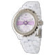 Ein Digitalbcon-Design mit einem amethystisch lila Farbmotiv und Damast-Design in dieser einzigartigen "Damask Amethyst Wedding Anniversary"-Uhr. Dieses ansprechende und elegante Design ist mit kontrastfarbenen Uhrenfiguren und individuell gestaltbaren Textschriften zum Anzug Ihres eigenen besonderen Anlasses ausgestattet und ist somit das ideale Jubiläumsgeschenk für Eltern oder Ehegatten.
