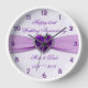 Ein Digitalbcon-Design mit einem lila Amethyst-Farbmotiv und Damaskus-Design in dieser einzigartigen "Amethyst Wedding Anniversary" Wall Uhr. Dieses farbenfrohe und elegante Design wird durch kontrastfarbene Amethystfarben-Uhrennummern ergänzt, um die Stunde anzuzeigen und um eine Textschrift zu erstellen, die dem Anzug Ihres eigenen Designs und Grußbildes entspricht!