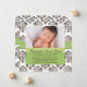 Damask Baby Birth Foto Annoucement Green Brown Ankündigung