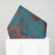 An ornate, weathered design featuring a stylized floral or fleur-de-lis shape in teal and turquoise tones, highlighted with copper and rust textures—evoking antique charm and rich decorative detail.