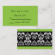 Einfach aber schön, lustig und hell grün mit einer Damast Band am unteren Ende. Match es zusammen mit der Damask Envy Hochzeit einladen. Denken Sie daran, Sie können einfach mit Ihrem eigenen Text und Bildern anpassen! Vorder- und Rückseite. Sie können die Hintergrundfarbe und die Textfarbe ändern.