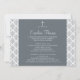 Personalisieren Sie diese Damask Design-Einladung, um sich an Familie und Freunde zu schicken, die eine erste Kommunion oder Feier feiern. Dieses Farbschema ist in Holzkohle grau/silber gehalten. Wenn das Farbschema nicht das ist, was Sie gewollt haben, lass mir bitte, bevor Sie Ihre Bestellung aufgeben, und ich werde ein neues Design für Sie erstellen. paula@labellarue.com Bitte vergewissern Sie sich, dass Sie Ihr Design vor dem Absenden Ihrer Bestellung nachweisen. Wenn Sie Fragen zum Design haben, lass mir bitte Bescheid und ich werde Ihnen gerne beim Design behilflich sein, aber nach der Bestellung müssen Sie sich an den Zazzle-Kundenservice wenden. Vielen Dank!