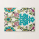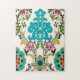 Türkisfarben, Pflaume, grüne und lila Blumenmuster treffen sich auf weißem Hintergrund, um den Damast-Druck der Juni-Erica Vess zum Leben zu erwecken. Arbeitet als Geschenk für sich selbst, einen Freund oder ein Familienmitglied.