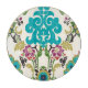 Türkisfarben, Pflaume, grüne und lila Blumenmuster treffen sich auf weißem Hintergrund, um den Damast-Druck der Juni-Erica Vess zum Leben zu erwecken. Arbeitet als Geschenk für sich selbst, einen Freund oder ein Familienmitglied.