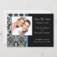 Mit unseren Ankündigung Datum freihalten Cards kündigen Sie Ihre zukünftige Hochzeit mit einem wunderschönen schwarz-weißen Damast-Muster an, das mit einem royal blauen Foto-Rahmen bespannt ist. Fügen Sie einfach Ihre Hochzeitsinformationen und Foto und Sie sind alle Set zu gehen! Passende Briefmarke und Umschlag Aufkleber in unserem Shop