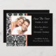 Mit unseren Ankündigung Datum freihalten Cards mit einem schönen schwarz-weißen Damast-Muster mit einem gepfirsichbeschnittenen Foto-Rahmen verkünden Sie Ihre Hochzeit. Fügen Sie einfach Ihre Hochzeitsinformationen und Foto und Sie sind alle Set zu gehen! Passende Briefmarke und Umschlag Aufkleber in unserem Shop