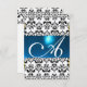 DAMASK GEM MONOGRAM Blau-weiße uAwg Einladung