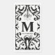 Dieses Handtuch ist mit einer Silhouette aus Kronleuchter, Fledermäusen, einer Spinne und einer schwarzen Katze auf schwarz-weißem Damast-Hintergrund gestaltet. Sie können mit Ihrem Vor- und Nachnamen personalisieren.