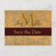 Damask Gold Save the Date Monogram Annoncement Ankündigungspostkarte