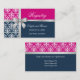 Damask Imitate Silver Ribbon Navy Blue Fuchsia Begleitkarte