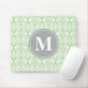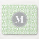 Damask in Mint Green Grey Monogram Mousepad