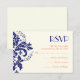 Damask Marine blau, Korallenhochzeit RSVP Antwortk Karte