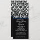 Beginnen Sie Ihren Event mit unserem trendigen und eleganten Damask Bridal Duschbad Set auf schwarzem Hintergrund mit einer Midnight Blue Band. Anpassen Sie einfach unsere Einladung mit Ihren Hochzeitsinformationen und Sie sind alle Set zu gehen. Erhältlich in anderen Farbkombinationen in unserem Shop unter www.celebrateitweddings.com. Karo unsere passenden Dankeschön-Notizen, Aufkleber und Brautknöpfe in unserem Shop