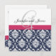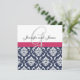 Damask Monogram Blue Pink White Weditation Einladung