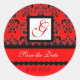 DAMASK MONOGRAM, rot Schwarz-weiß Runder Aufkleber