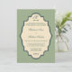 © 2010 Sozialite Designs. Elegante Damast-Einladung gemacht, um Vintag auszusehen. Schöne antike, weiße und olivgrüne Farben. Wenn Ihnen dieses Design gefällt, aber Sie möchten, dass zusätzliche Hochzeitsartikel hergestellt werden, zögern Sie bitte nicht, sich mit Socialite Designs in Verbindung zu setzen.