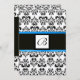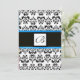 DAMASK MONOGRAM, schwarz-weiß, blau Einladung