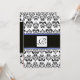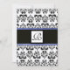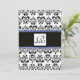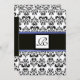 DAMASK-MONOGRAM, Schwarz-weiß, blau Einladung
