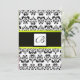 DAMASK-MONOGRAM, schwarz-weiß, gelb Einladung