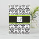 DAMASK-MONOGRAM, schwarz-weiß, grün-gelb Einladung