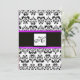 DAMASK MONOGRAM, schwarz-weiß, lila Einladung