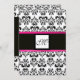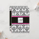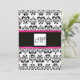 DAMASK-MONOGRAM, Schwarz-weiß, rosa Fuchsienviolet Einladung