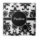 Damask Monogramm Keramik Fliesen mit schwarz-weiß Blumenmuster und Platz können Sie Ihren Namen oder Initial hinzufügen. Benutzen Sie dies als Trivet oder geben Sie jemandem etwas Besonderes als personalisiertes Geschenk.