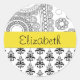 Damask Muster, Schwarz und Weiß Damask, Ihr Name Runder Aufkleber