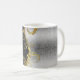 Schöner silbergrauer und schwarzer Damast mit goldfarbenem Blumenwirbel