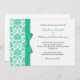 Damask Turquoise Bow Wedding Einladung