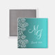 Ein Digitalbcon-Bilddesign mit türkisfarbenem Blau- und Damaskasdesign mit einer Vielzahl von individuellen Bildern, Formen, Mustern, Stilen und Schriftart in diesem einzigartigen "Damask Turquoise Wedding Magnet". Dieses elegante und ansprechende Design wird durch eine maßgeschneiderte Textschrift ergänzt, um Ihren eigenen Gruß Anzug. Dieses spezielle Design passt zu den Ausführungen von Wedding Invitation Cards in den verschiedenen Größen, zu RSVP Card und Rücksendeadressen-Aufklebern sowie zu Aufklebern, Buttons und Bindern.