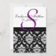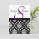 Damask Hochzeitseinladung mit Lila Monogramm. Layoutentwurf von Elke Clarke©2009. Grafiken lizenziert für use.com und WhiteWhimsicalWeddings.blogspot.com. Passen Sie Ihre Monogramm-Namen und Hochzeitsfarben an. Fügen Sie alle Ihre Hochzeitsinformationen auf der Rückseite der Karte mit Zazzle's einfach zu bedienenden Menüaufforderungen hinzu.