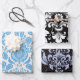 Damask blue and black wrapping paper sheets set of 3.