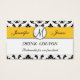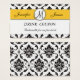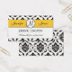 Hochzeitsempfang Gratis Drink Gutscheinkarte mit schwarz-weißem Damast-Muster, bedruckt mit dem Monogramm-Initial, den Braut- und Bräutigamen auf einer gelben Linie mit 3D-Schatteneffekt. Gedruckt mit Ihren Namen und Monogramm. Lassen Sie sich am Empfang Ihre kostenlosen Getränkekarten ausstellen oder nehmen Sie sie in Ihr Hochzeitseinladungspaket auf. Design von Elke Clarke© Graphics lizenziert.