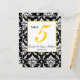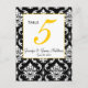 Tischnummer Karten mit schwarz-weißem Damast und gelben Akzenten. Entwurf des Layouts von Elke Clarke©. lizenzierte Grafiken. Passen Sie Ihre Daten an und erstellen Sie eine Karte mit jeder Nummer und fügen Sie eine Karte pro Nummer in unseren Warenkorb ein.