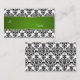 Damaskus Schwarzweißmuster mit weitem grünem Streifen Hochzeitskarte/Tischkarte/Geschenkkarte.