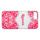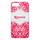 Damask Muster elektrische krümelrote, weiße und graue Rahmen mit dem Namen niedlich mädchenhafte iPhone 7 Gehäuse. Ein komplett individualisierbares elegantes Design, das zeitgemäß, modern und Retro zugleich ist. Sie können es personalisieren und Ihre Monogramm, Initialen oder anderen Text hinzufügen. Sie können aus über 200 Hintergrundfarben wählen und das Rot in die Farbe Ihrer Wahl ändern. Niedliches und trendiges Design mit einem Vintagen Flair.
