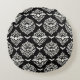 Damast aus schwarzem und weißem Bat Rundes Kissen