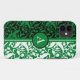 Elegante, bunte und schöne kundenspezifische grüne, weiße und schwarze Monogrammdamastmuster iPhone 4/4S Case-Mate-Hüllen und -geschenke für den Tag des Valentines, die Geburtstage, Weihnachten oder irgendeine Gelegenheit. Addieren Sie einfach Ihre Initialen!