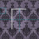 Linda Baysinger die Hand Pecks gezeichnet, gotischer schwarzer Damastentwurf, auf Steinbeschaffenheit des lila Imitats.