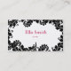 Schwarzweiss-Visitenkarte passend für irgendeinen Beruf. Ausrüstungsbeschreibungs-Damastmuster im schwarzen Set gegen einen Hintergrund im Weiß. Aller Text ist kundengerecht. Hintergrundfarbe kann zu geändert werden, was auch immer Sie wünschen.