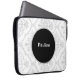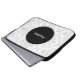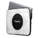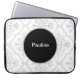 Damastlaptophülsen mit dem Monogramraum, zum eines Namens oder der Initialen zu addieren und des grauen und weißen Damastmusterhintergrundes zu schwärzen, der Ihren Laptop, netbook oder Tablette in der Art schützt. Sitze 15-Zoll-tragbare Geräte.
