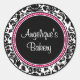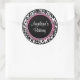 Damast mit schwarzer Mitte und rosa Zierleisten Runder Aufkleber