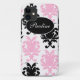 Kundenspezifisches Monogramm iPhone 5 Hüllen mit rosa und schwarzem Damasthintergrund schützt Ihr Telefon in der Art! Addieren Sie Ihre Initialen oder Ihren Namen.