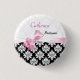 Nobler eleganter Schwarzweiss-Damastmuster Hochzeits-Brautjungfern-Knopf mit Bandeffekt. Merken Sie bitte: Band ist ein Druckbild.