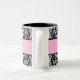Reizende Schwarzweiss-Damast-Tasse mit einem rosa Streifen in der Mitte für den Text. Fertigen Sie mit Ihren Namen besonders an und Hochzeitsdatum für ein großes kleines danken Ihnen Geschenk oder für selbst zu verwenden. Groß zum wedding Frühstücke.